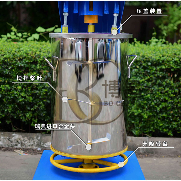 博昌公司研發(fā)的顏料打粉機適用于各種塑料顏料與色母的混合攪拌;可一機配多桶。設(shè)備與原料所接觸部分的材料皆為304鏡面不銹鋼制作;做工精細,光滑的桶壁及槳葉在清洗時相當(dāng)便捷。特制攪拌刀使色粉、顏料混合更加均勻、快速;攪拌軸轉(zhuǎn)動部位采用合金烏鋼制作;經(jīng)久耐用,耐高溫,不會因高速運轉(zhuǎn)發(fā)熱而燒焦色粉;高效;一般可在1-10分鐘內(nèi)攪拌均勻,數(shù)顯定時功能,可隨意設(shè)定,操作簡單。