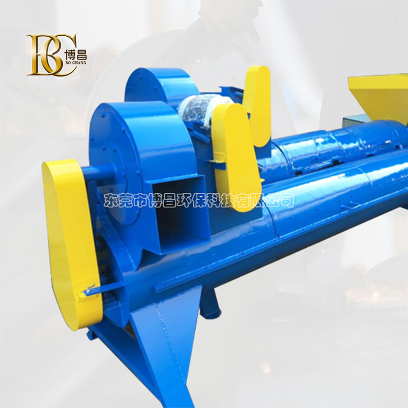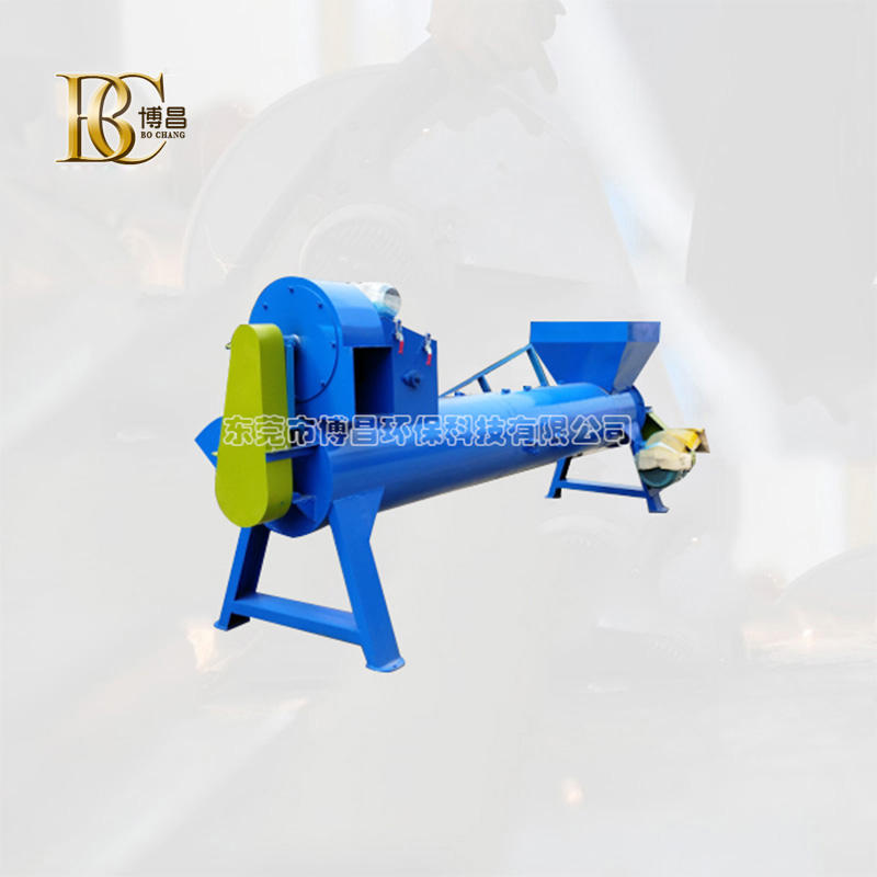 將PET塑料瓶料輸送至脫標機入料口,脫標機身前部有一段螺旋推送,將瓶推至脫標段。經過主軸旋轉的動刀與筒壁上固定的定刀進行螺旋式的磨擦,使標簽紙掉落,出口處有離心旋風式設計分離室,將剝離的標簽與PET瓶身分開,標簽紙從頂部的標簽出口處吹出,PET瓶通過主軸的旋轉螺旋推送從另一側出來。還可依據瓶體的大小不一,對主軸合金刀片和內壁刀片的間距進行靈活調節。合理避免了刀片對瓶身的劃傷,讓生產廠家產出的瓶片質量更好,賣出更高的價格。