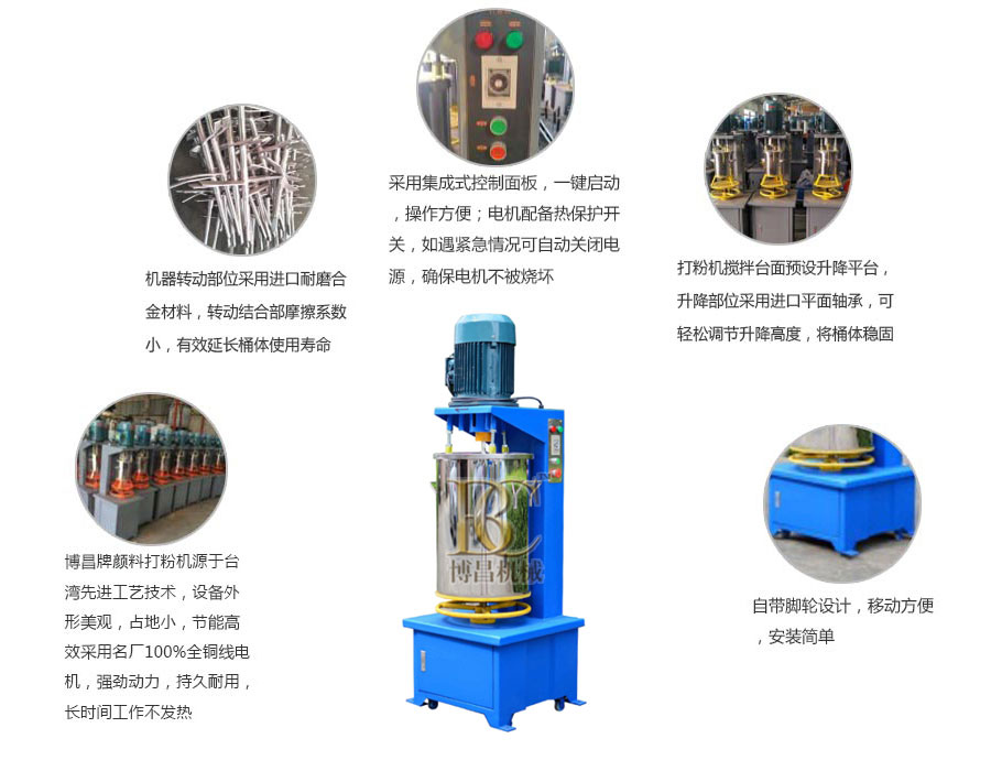 主要適用于各種塑料顏料、色分、助劑等物料的高效混合攪拌。可一機配多桶。